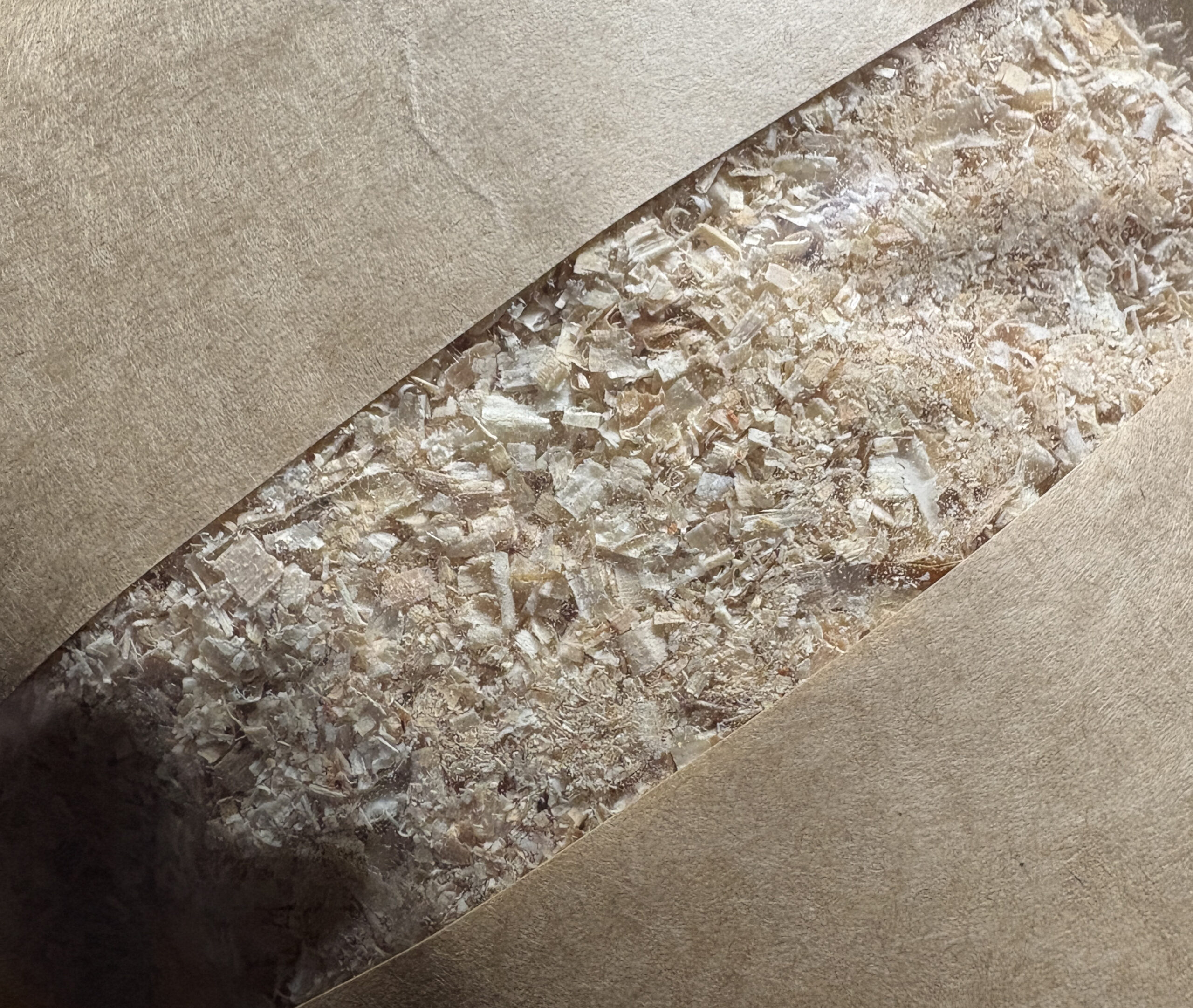 新築建築時に出る、木屑や資材などを細かく砕き、おがくず状にして作った簡易トイレです。